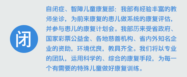 中心占地26亩,一期建筑面积10000平米,拟开设康复床位120张。现有专业技术人员30多人,主要开展脑瘫儿童康复、智力及孤独症儿童康复、听障儿童康复、康复工程及社区卫生服务等业务项目。